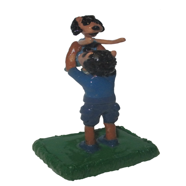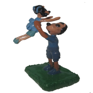 A cold porcelain, one of a kind figurine. Made of my original creature ” Cutes”. “Cutes Father Tossing Up Daughter” figurine was inspired by the memory of my father tossing me up in the air. The breathless feel I felt. This is a great collectable! This is one of my life’s moments collectable.