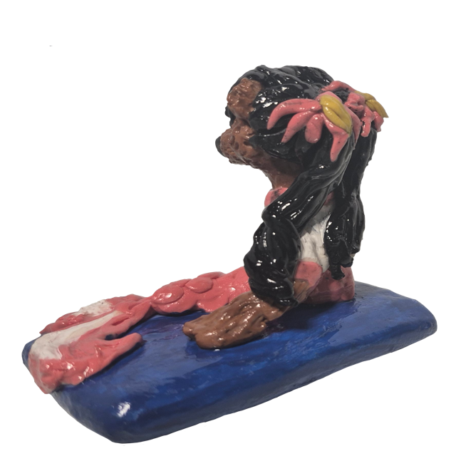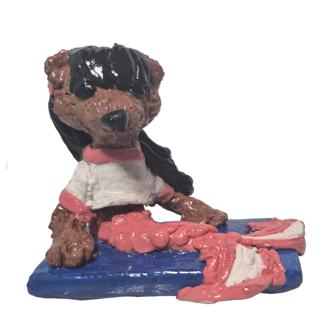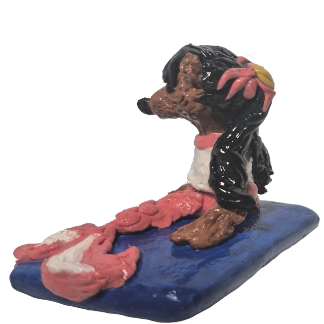 Mer-Teddy Figurine is a hand sculpted figurine. Made of cold porcelain. This little mermaid teddy bear is just taking a break after a long day of swimming.
