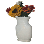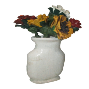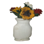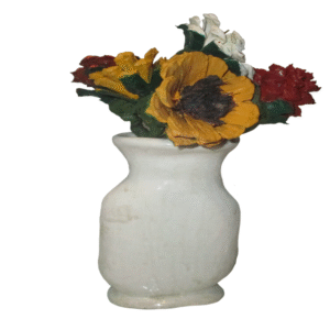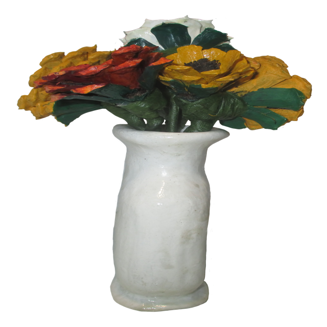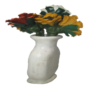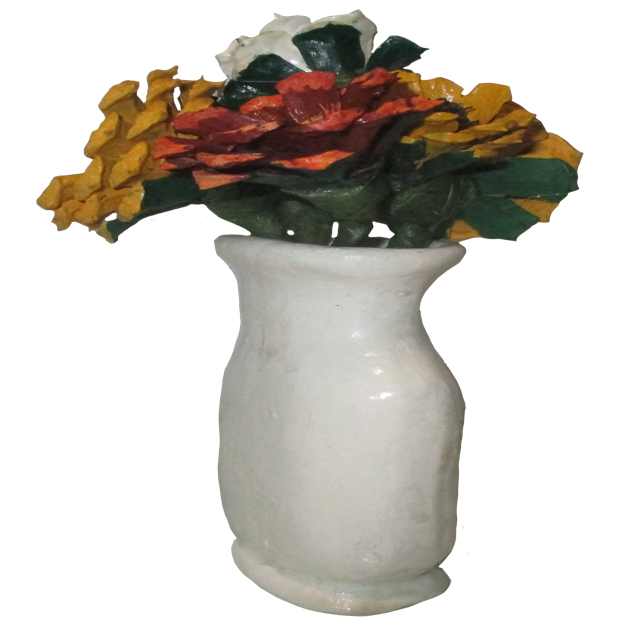 An red and orange sunset inspired pine cone floral arrangement, in a white vase. This is an simple, clean, and will not wilt. Made of individually hand cut, and hand painted pine cone flowers. In an simple elegant white vase. The vase was hand formed of cold porcelain clay. This will make a great gift for mothers day, or just a nice elegant decoration for any room.